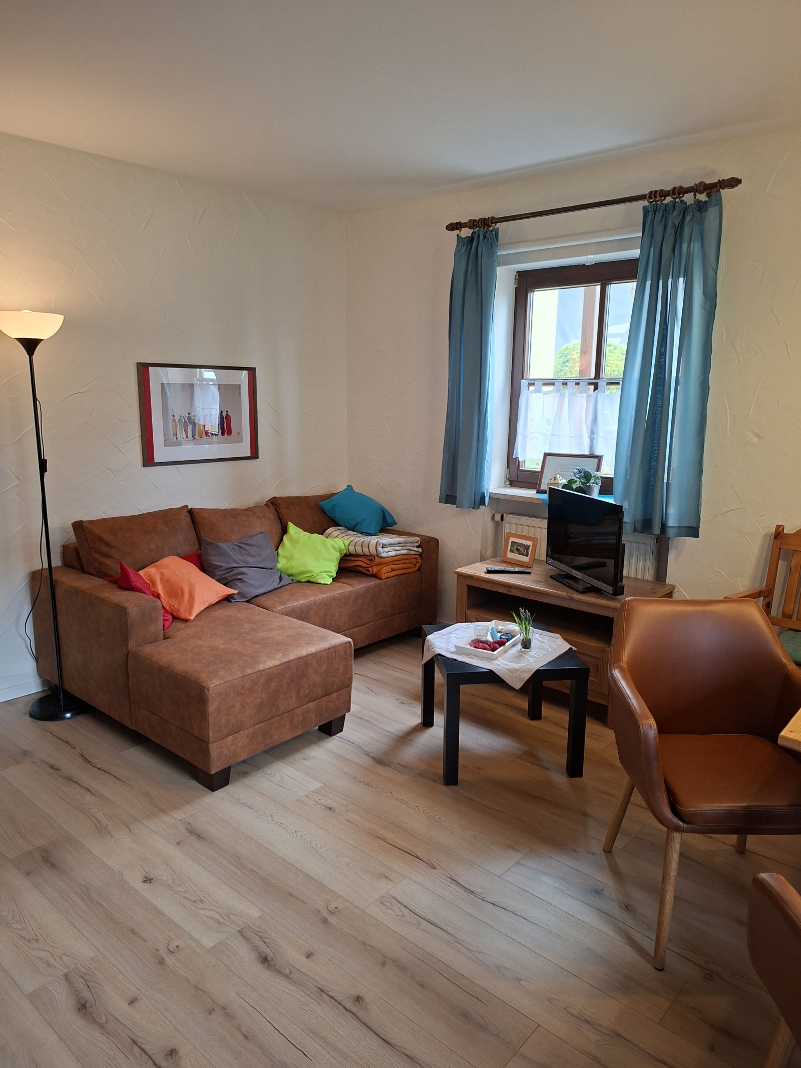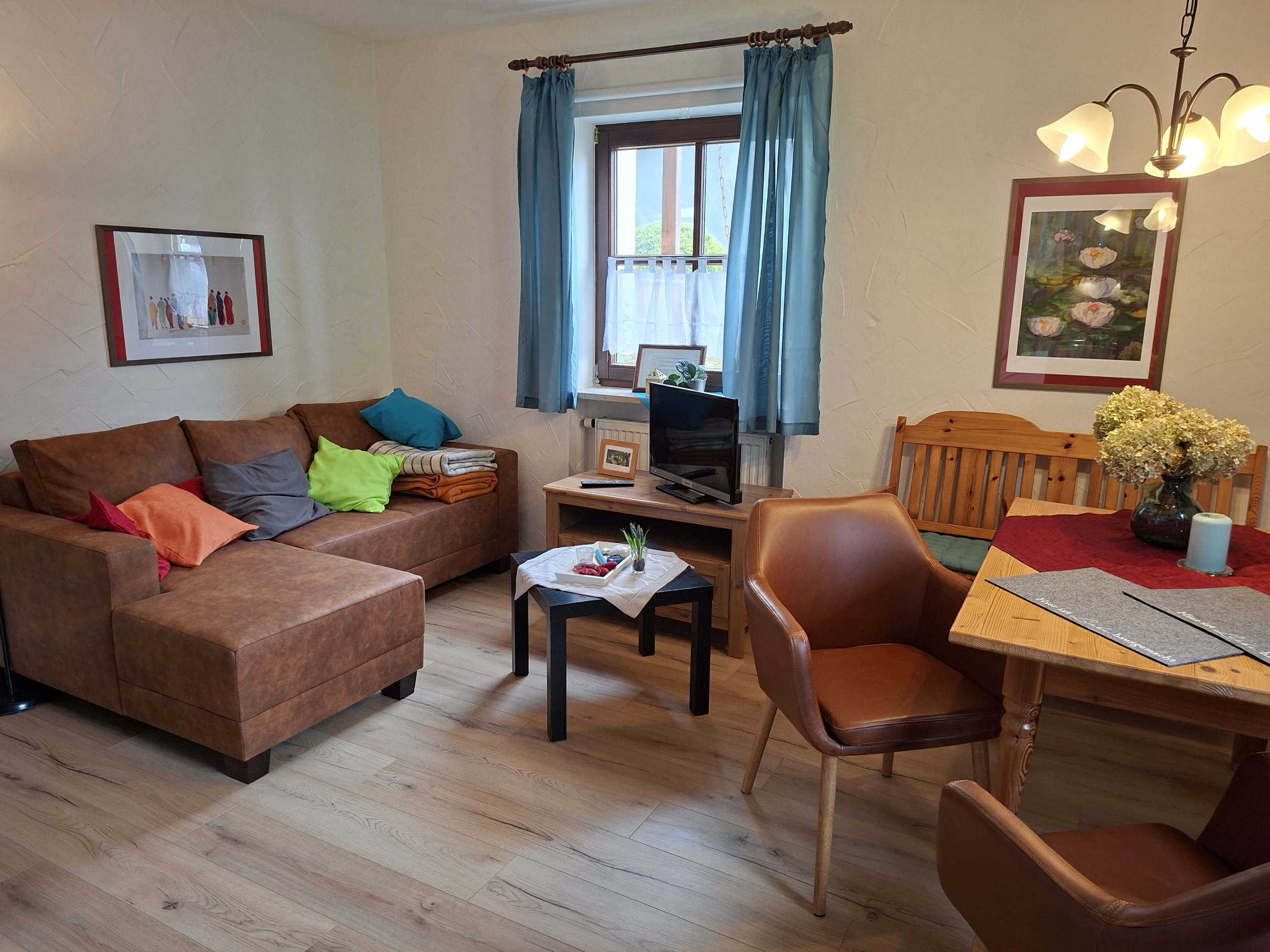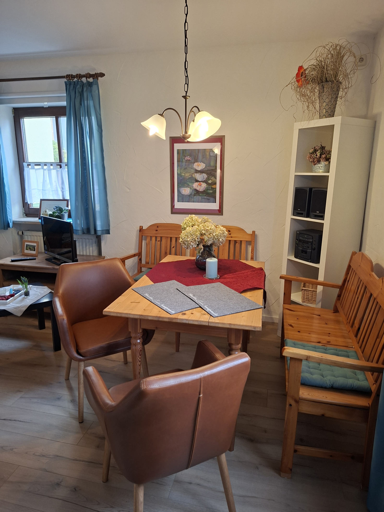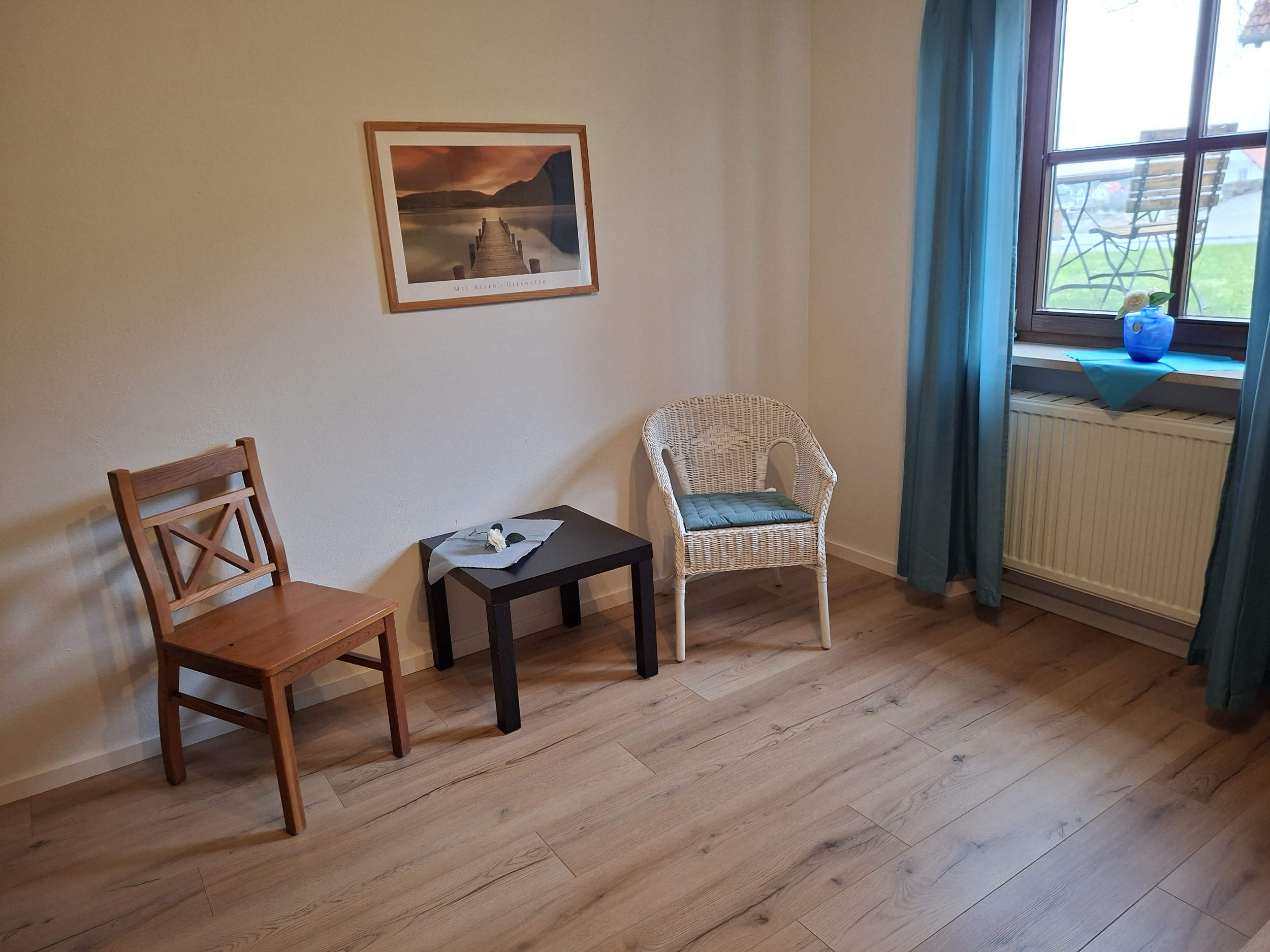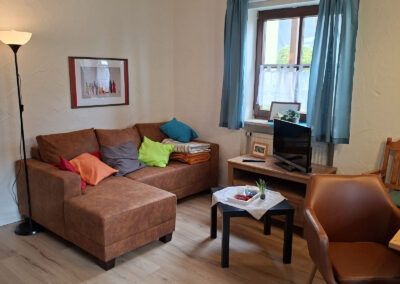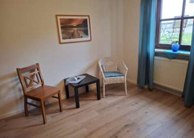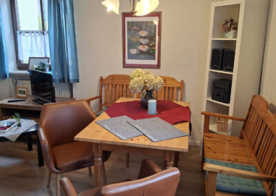 Gegenüber dieser Wohnung befindet sich unser schmuckvoll eingerichteter Aufenthaltsraum, der von allen Gästen herzlich gern genutzt werden kann.